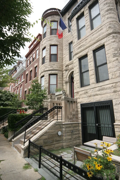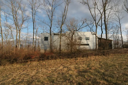 A collaborative design process between the in-house interior design team, the architectural team and the clients, established a design concept for constant referral. Conceptually, the house is a box-within-a-box-within-a box set upon a plinth. Visually, the construction is a link between the western tree line, the river, and the scenic mountain views to the east and south. The layers made by recessed volumes create sun control on the east and south. The plinth frames a series of courtyards, which composes an ordered landscape among the rolling hills and tree-lined drop-off toward the river. The color and scale of the front entrance provides a warm reception. Inside the entry, three sculptural hanging lanterns act as an anchor for this end of the home's axis and forms a contrast to the stainless steel circular staircase. A view down the hallway presents another anchor - a red garden sculpture just beyond the great room. Off the entry is the master bedroom wing. This arm stretches out to the tree line above the river, which gives one the impression of being a tree house. The well-scaled kitchen supplies the necessary space for the preparation of large meals for entertaining, while also functioning well for a retired couple. The dining room, directly adjacent to the kitchen and the great room is very simplistic and allows for meals and the views of the Blue Ridge to lake center-stage. The great room with panoramic views to the east, south, and west reinforces the design concept. The south side rises for solar gains while also giving views to the loft. The grid-like pattern of the passive solar concrete floor paired with the box pattern of the custom Tibetan rug maintains a boundary for furniture arrangements and invites one to wander around the room to appreciate the scenic vistas. The rug, with stone colors accented by red (a nod to the sculpture) affirms the home's architectural axis. The upper floor consists of a guest bedroom and bathroom, and a loft office overlooking the great room. Scale and proportion support the clients' economical wishes without sacrificing good design.
